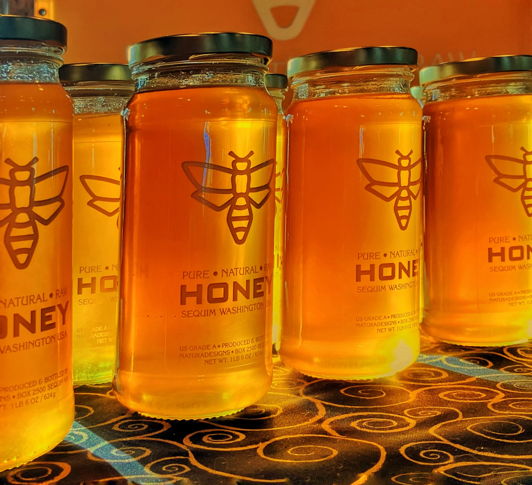 Keeping it simple… with the exception of the holiday season we offer one variety and one size of honey. It's a blend that combines the medicinal qualities of Hawthorne and Burdock from the Dungeness region near the Strait of Juan de Fuca with the rich sweetness of Wildflower and BlackBerry from the Sequim Prairie. Our honey is extracted with care by hand and stored at the same temperature as the interior of a healthy hive (approximately 92°). Our customers most always comment about how nice it is to be handed a warm jar of honey!